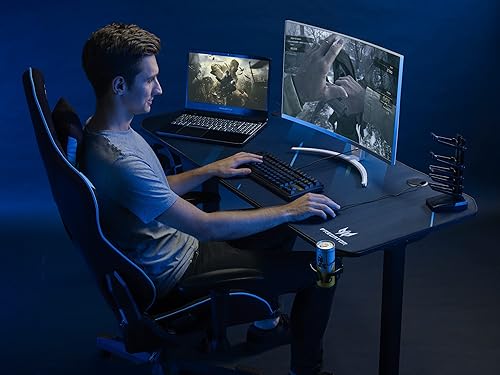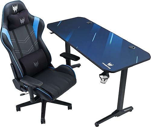 Predator Gaming Chair, Chaise Rift Essential Gaming, Coussin Lombaire, Appui-tête Amovible, Accoudoirs Réglables, Mouvement De Dossier 155 Degrés, Cadre en Acier, Cuir Synthétique, Noir/Bleu