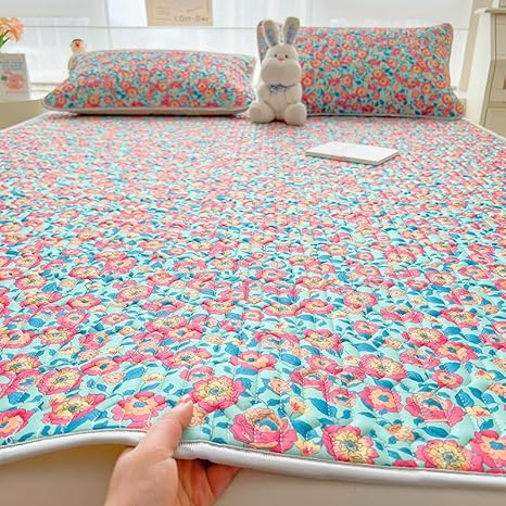 Parure de lit 3 pièces avec housse de couette et taie d'oreiller – Drap de lit rafraîchissant et lavable en soie glacée – Pour dortoir et étudiant (floral, 150 x 200 cm)