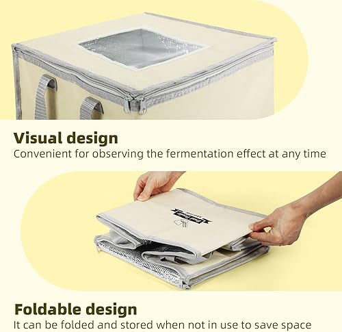 Banneton Panier Boîte avec Chauffage, Étuve de Pâte Contrôle de la Température Pliable Visuel Banneton pour Pain et Pâte, Yogurt, Natto Fermentation Baskets