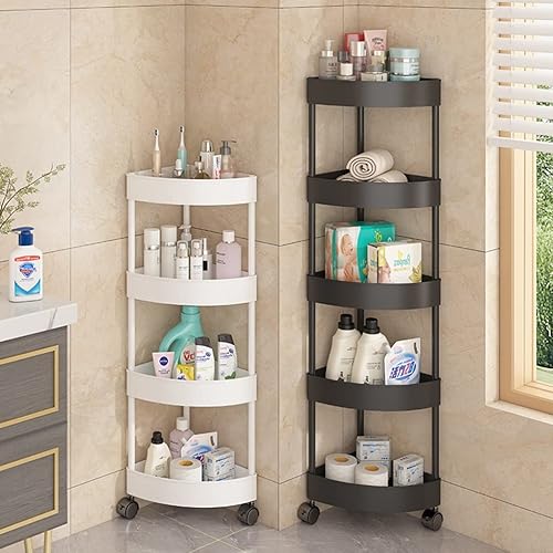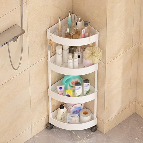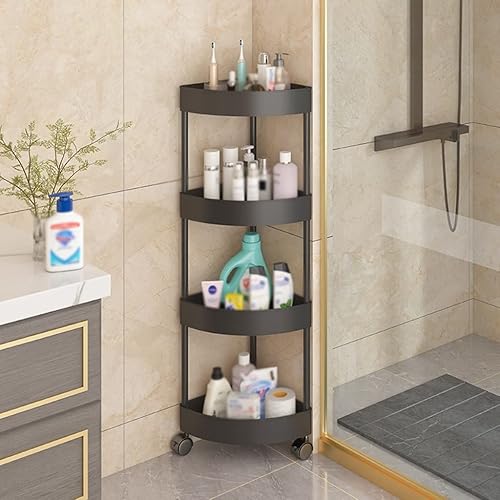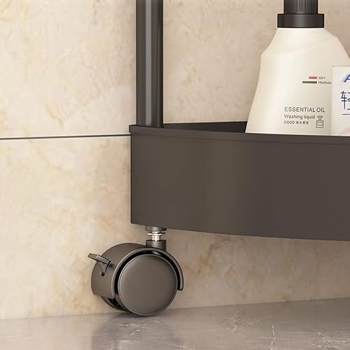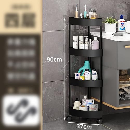 GUINJO Support de Douche à 4 Niveaux avec roulettes, étagère d'angle antirouille, Rangement de Cuisine et de Salle de Bain sur Pied (Color : Black, Size : 37 * 90cm)