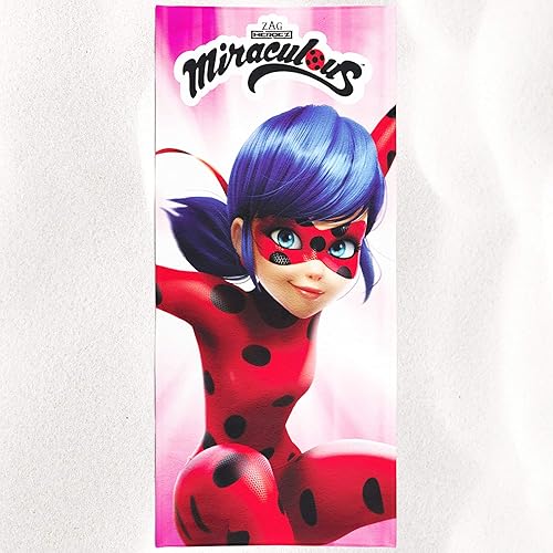 Grand drap de bain Miraculous Ladybug, 75 cm x 150 cm - neuf, emballage d’origine - drap de plage - drap de bain - 100% coton - Marinette Dupain-Cheng - Adrien Agreste - Ladybug - Chat Noir - Paris
