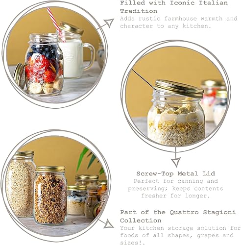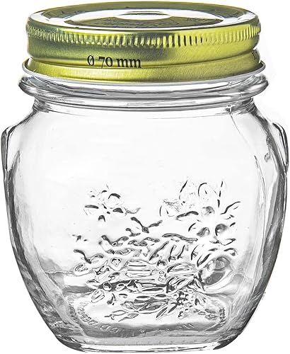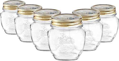 Bormioli Rocco Quattro Stagioni Verre Jars Stockage - Cuisine Traditionnelle avec Canister Alimentaire vis Couvercle supérieur - 300ml - Lot de 6