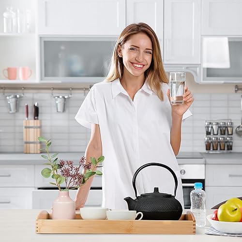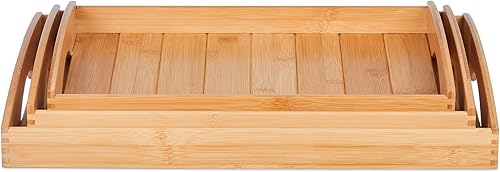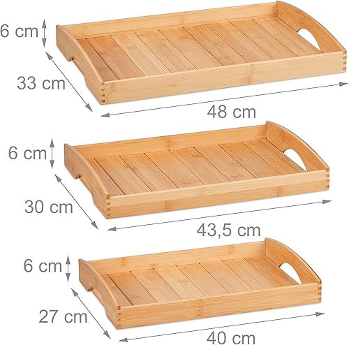 Relaxdays Plateau de Service, 3 Supports aux Dimensions diverses, Bambou, poignées, Bord relevé, rectangulaire, Nature
