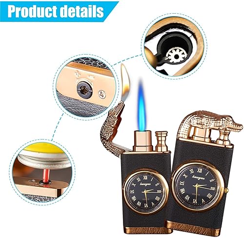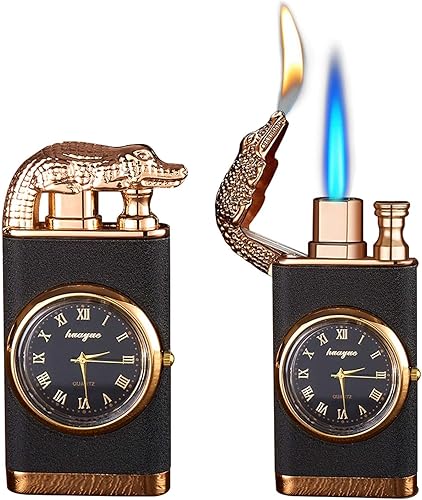Leikurvo 2 Pièces Briquet À Double Jet Flamme Robuste avec Fonction Montre, Briquet Tempête Rechargeable Au Butane, Briquet Double Arc Étanche pour Le Camping Et Aventures en Extérieur, Noir