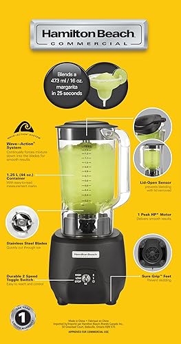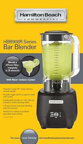 Hamilton Beach Mélangeur à barre ® 908®R, HBB908R-CE, 1 HP, récipient en polycarbonate de 1,3 L, 2 vitesses, 220-240 V, noir