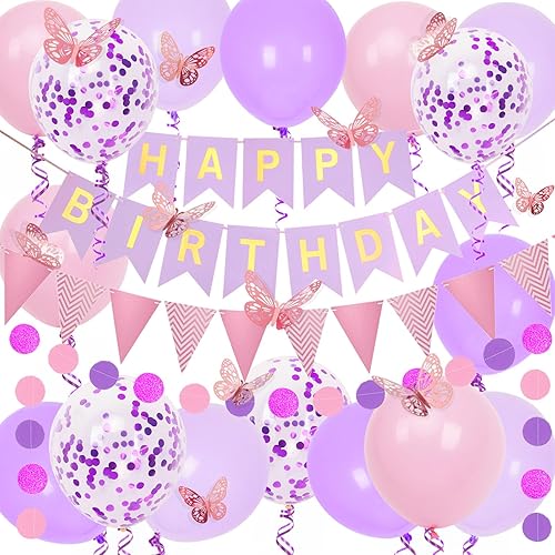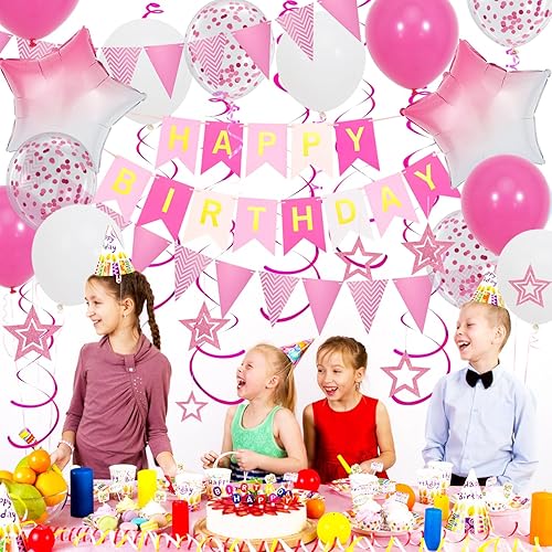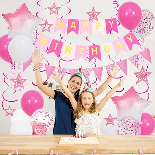 Decoration Anniversaire bleues, Bannière de Joyeux Anniversaire et Ballons étoilés Bleus, étoiles Pailletées Suspendues Avec Tourbillons Suspendus, Bannière de Banderole D'anniversaire