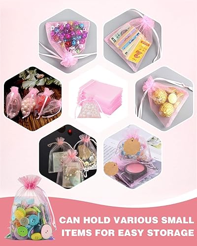 TPZORJX Lot de 50 sachets en organza Blanc et rose,Cordon de Satin,8 x 10 cm,Pochette cadeau en organza,Pochette à bijoux,Sachets de mariage,Sachets de lavande,Faveur de mariage