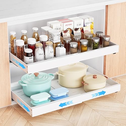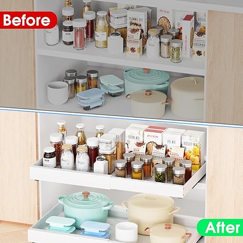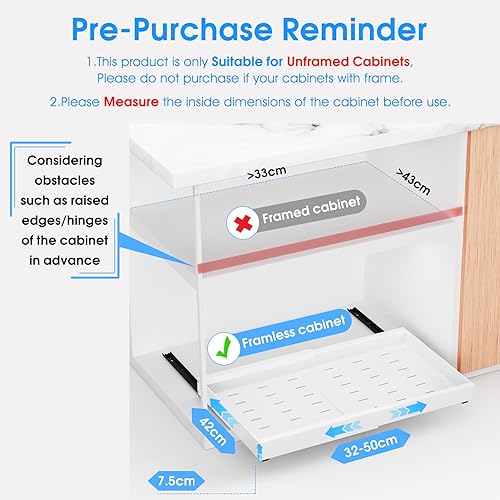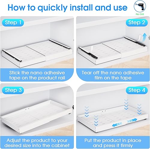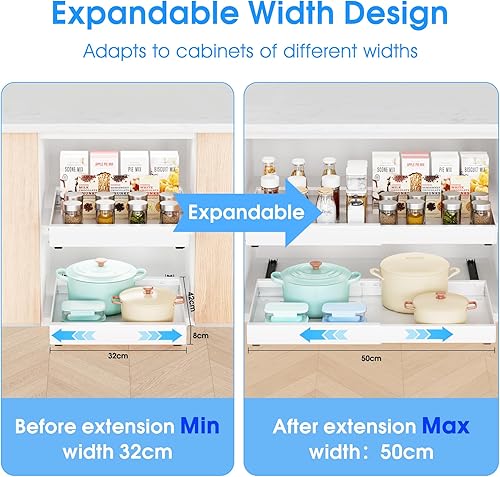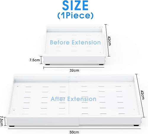 HUMTEOXI Tiroir Coulissant Cuisine, Bac Coulissant Placard Cuisine,Tiroir Coulissant Extensible(L32-50cm x P42 cm x H7.5cm), Pas de Vis/Poinçonnage,Tiroir Telescopique(Blanc-1 Pièce)