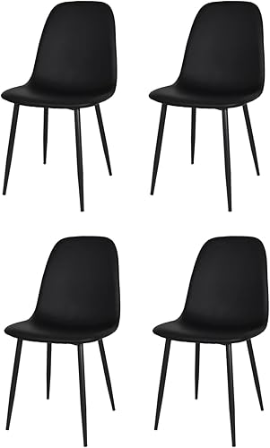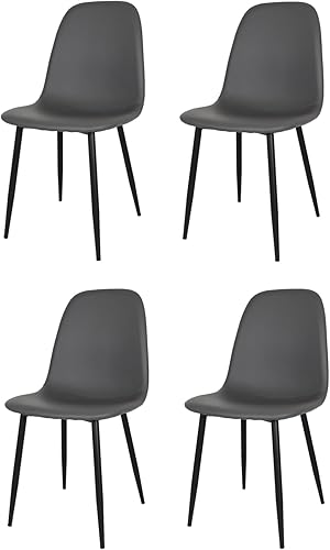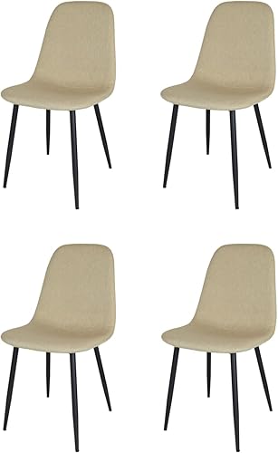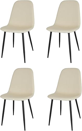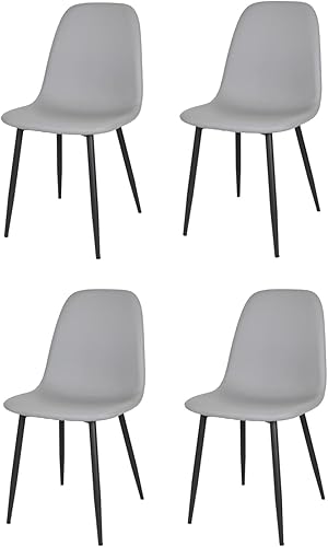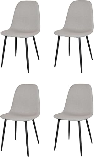 KEKOHOME Lot de 4 chaises Salle à Manger Sole Pieds en Acier Noir Mat, Tissu Gris Clair