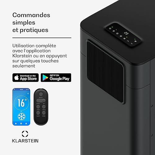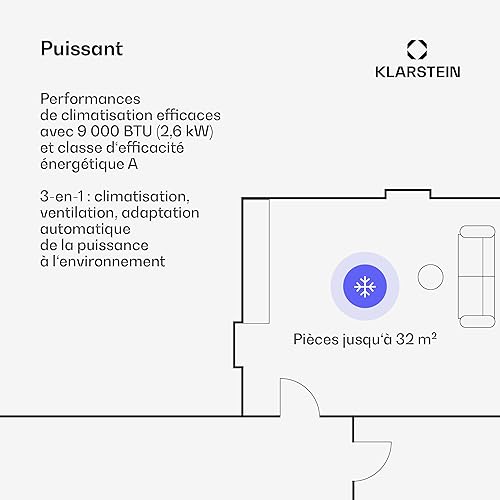 Klarstein Climatiseur Mobile avec Évacuation, 9000 BTU, 3 en 1, Refroidissement Silencieux, Déshumidification & Ventilateur, Contrôle Intelligent via Appli, Réfrigérant R290, Pour Pièces Jusqu'à 32 m²
