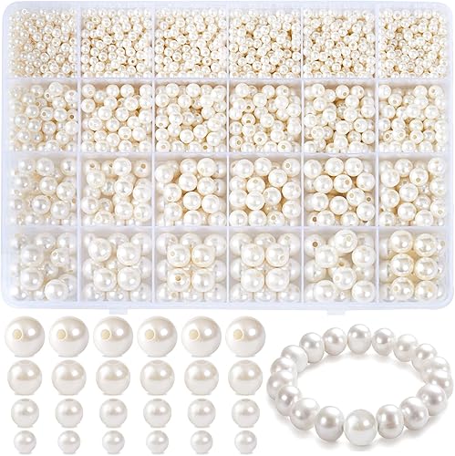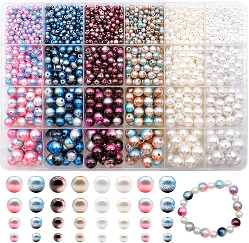 Dotilili 1890 Pcs Kit de Perle de Verre Rondes, 4/6/8/10mm Couleurs dégradées, Plastique Boules de perle d'écartement nacrées pour Bracelet Fabrication de Bijoux Collier sirène(Couleurs claires)