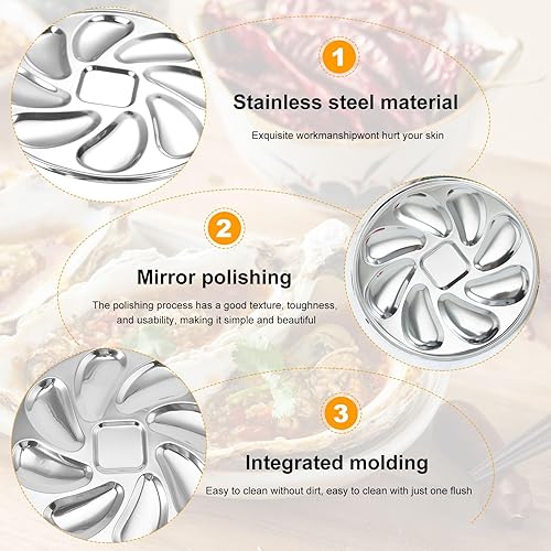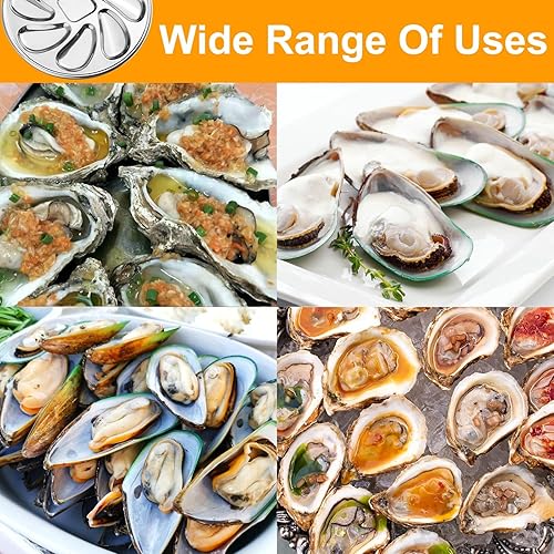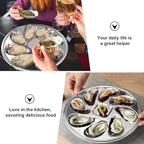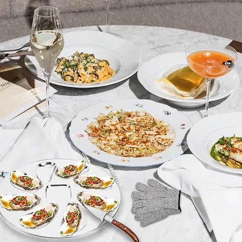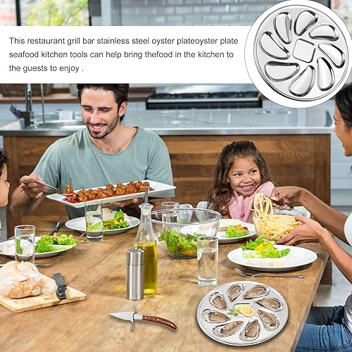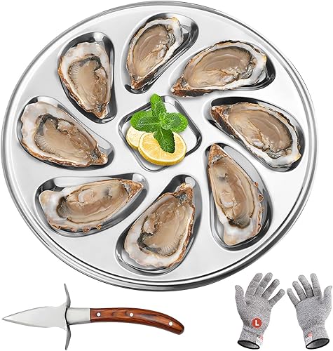 xianzhanEU 1 assiette à huîtres en acier inoxydable 8 fentes avec couteau à huîtres et gants, utilisable pour placer des huîtres, des coquilles Saint-Jacques