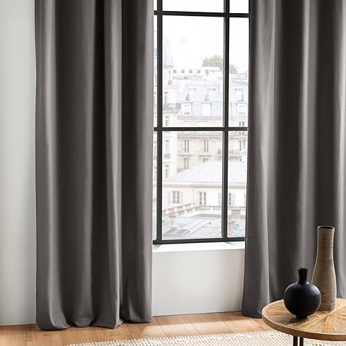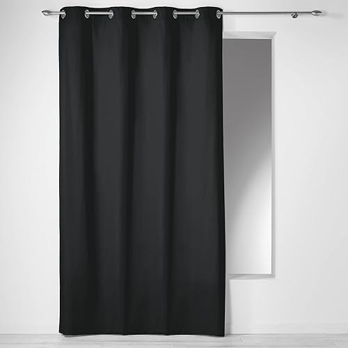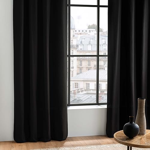 Douceur d'Intérieur, Rideau à Oeillets (140 x 240 cm) Panama Noir, Coton