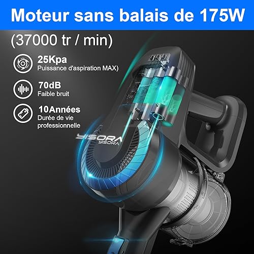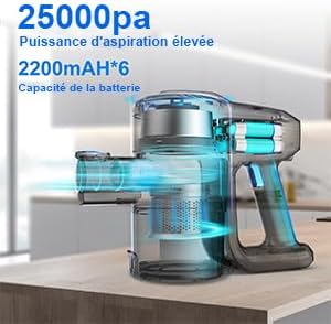 Aspirateur Balai sans Fil N300, 25KPa & 2 Vitesses, Aspirateur sans fil 175W, Aspirateur Léger, 50Min Autonomie, 6 en 1 Aspirateur Balai sans Sac pour Les Poils d'animaux, Tapis, Canapé, Voiture