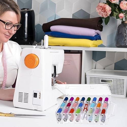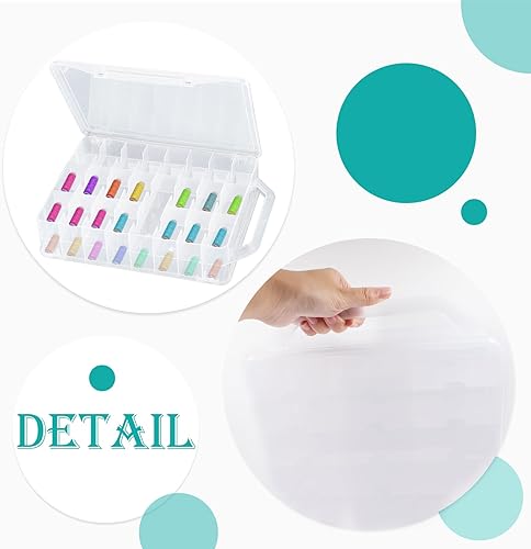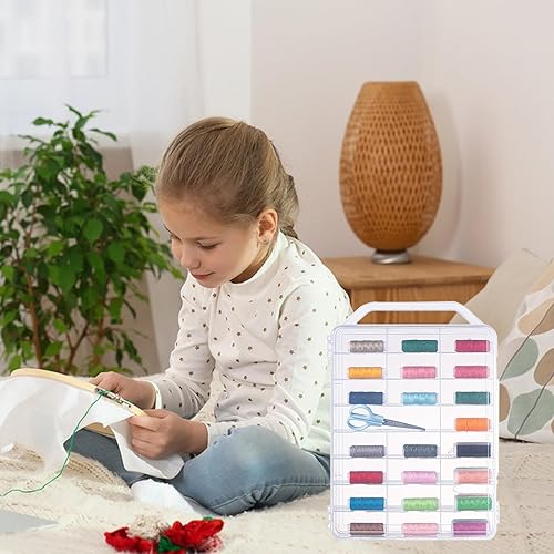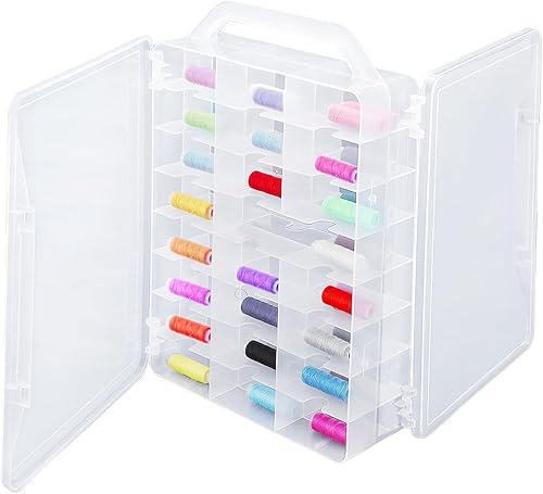 Cuyacili Boîte de Rangement pour Fil à Coudre pour 46 bobines Double face Boîte en Plastique Transparent avec poignée pour Fils à broder et à coudre, Artisanat 33x25x8,2 cm