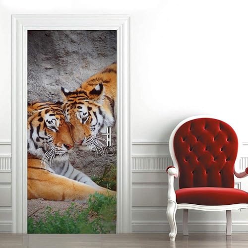 FYRHLH Autocollant Porte 3D Stickers De Porte Couple de tigres 3d Sticker Porte Pvc Imperméable Décoration Papier Peint Murale Pour Salon Cuisine Chambre Salle De Bain L83 x H204cm