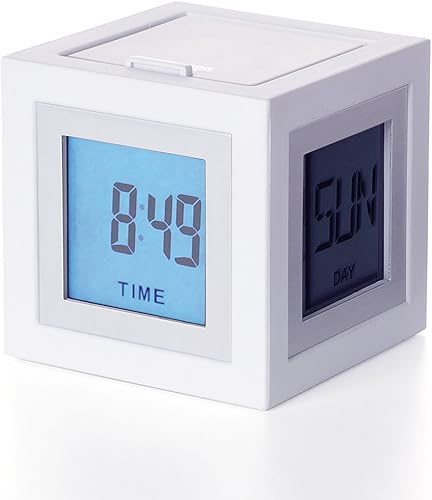 Lexon LR79W1 Cubissimo Réveil LCD 4 Cadrans ABS Injecté/Aluminium Blanc 5,1 x 5,1 x 5,1 cm