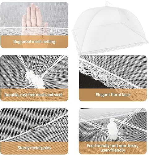 COMVASTARS 4 Pcs Cloche Alimentaire Anti Insectes,Cloche Alimentaire Pliable,Anti Mouche - Moustiquaire de Table pour Aliments - Couvercle Nourriture - Taille Universelle - Voyage/Camping/Maison