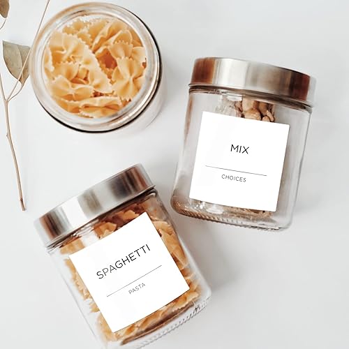 v2croft Lot de 168 étiquettes minimalistes pour bocaux de rangement et bacs de rangement, texte noir préimprimé sur vinyle blanc mat, organisation et rangement de garde-manger (blanc)