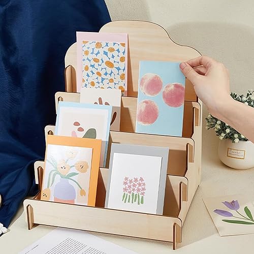 Présentoirs Cartes De Voeux, Présentoir En Bois Présentoir D'Autocollants, Présentoir De Cartes De Vœux à Plusieurs Niveaux, 4 Étages, pour Cartes Autocollants Photos Vendeur Comptoir De Détai