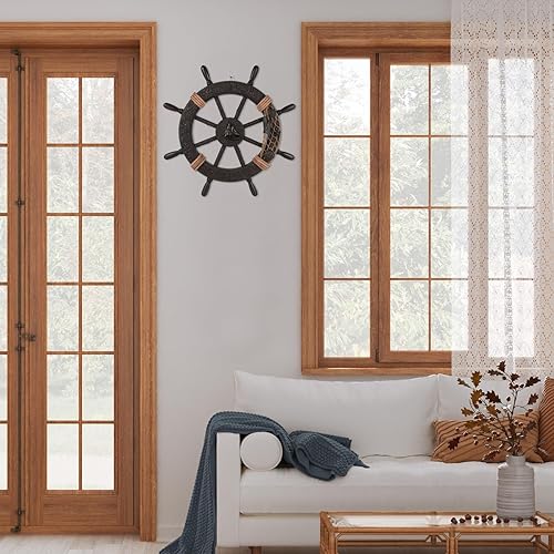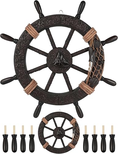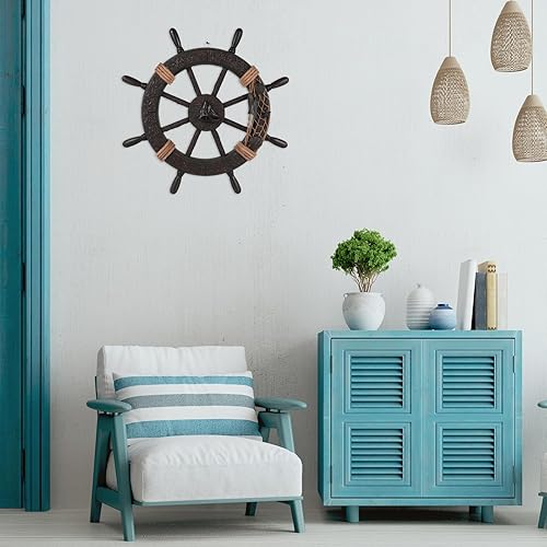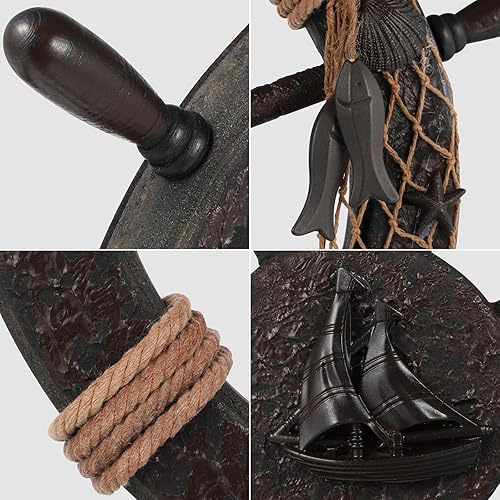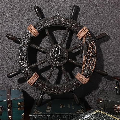 Healifty Décoration nautique en forme de gouvernail de bateau rustique, volant de bateau, filet de pêche, sculpture murale, décoration à suspendre pour la maison, la plage