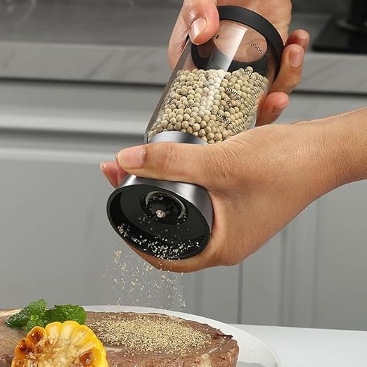 YZWHKJ Poivrier Electrique Moulin à Poivre en Acier Inoxydable, Corps en Verre Durable, grosseur réglable, Moulin à épices portatif, Moulin à Poivre Salieres et Poivrieres Electrique(300ml)