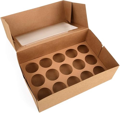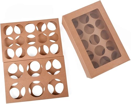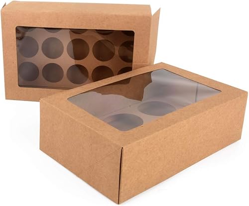 ewtshop® Lot de 12 boîtes à cupcakes, en papier kraft, boîte cadeau avec fenêtre, pour 2 tailles différentes de cupcakes