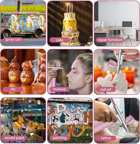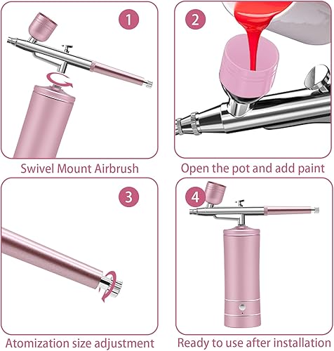 Ensemble D'Aérographe Sans Fil, Ensemble De Compresseur De Brosse À Air Portable Pour Modélisme, Gâteau, Créations Artisanales, Tatouage, Maquillage, Peinture Et Manucure, Rose Clair