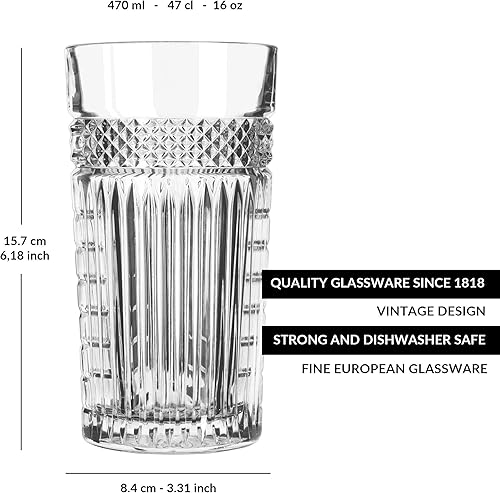 Libbey Verre long drink Radiant - 470 ml / 47 cl - 6 Unités - Design vintage - Vont au lave-vaisselle