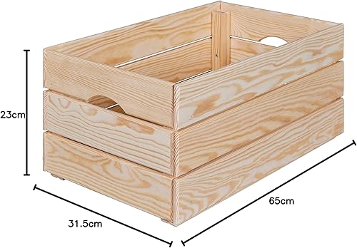 Inter Link, Caisse en bois, Caisse empilable en bois massif, Caisse de rangement, Pour fruits, légumes, vin, jardin, salle de bain, salle de jeux, Gain de place, pratique, 51 x 31