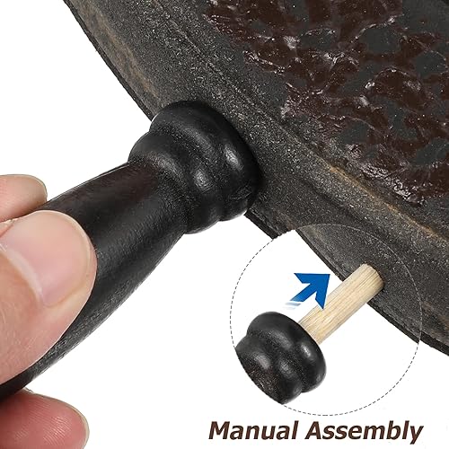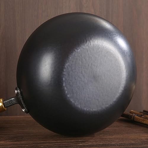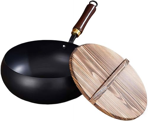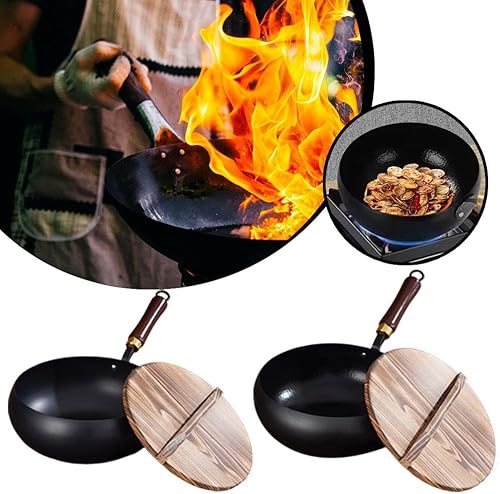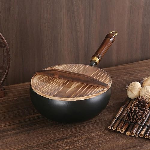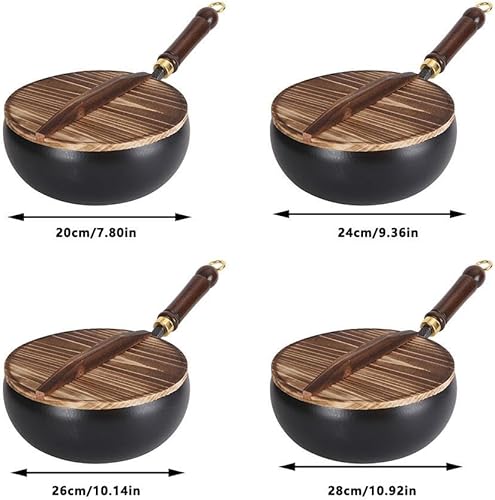 Poêle japonaise en fer non revêtue avec couvercle et poignée en bois, forgée à la main, antiadhésive, pour induction, électrique, gaz, toutes les tables de cuisson (motif marteau, 20 cm)