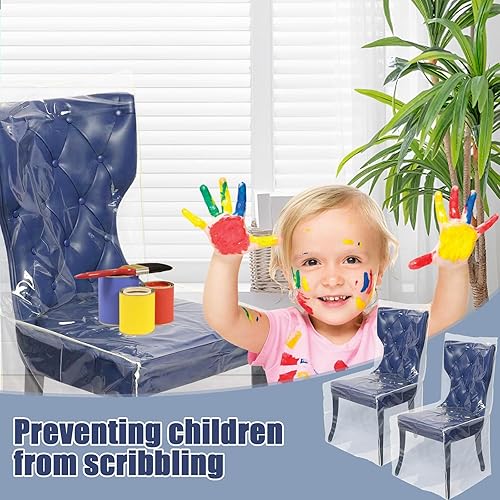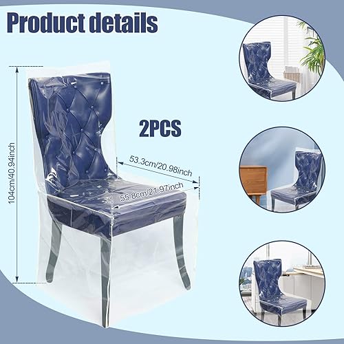 Lot de 2 housses de chaise de salle à manger en plastique transparent en PVC - Imperméables - Anti-poussière et anti-rayures - Pour maison, cuisine, chambre à coucher