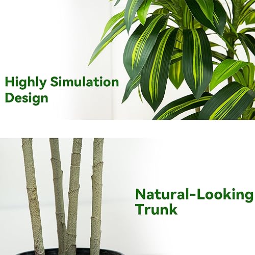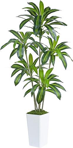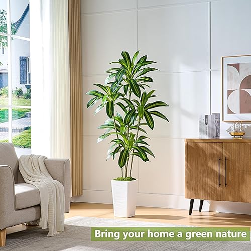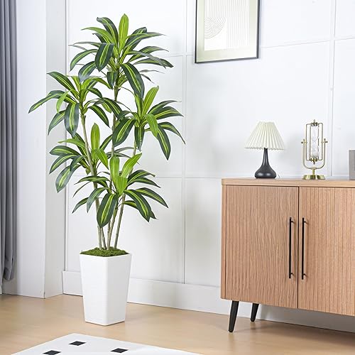 Arbre Artificiel Dracaena en Soie Faux Arbre avec Jardinière Blanche Fausse Plante de Sol Yucca Tropical (1Jardinière Blanche, 150CM) (1, Blanc, 150CM)