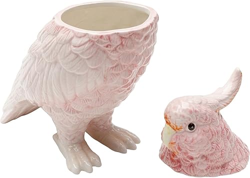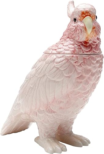 Kare Boîte décorative Design - Oiseau Exotique - Rose - Peinte à la Main - Céramique émaillée - Figurine décorative pour Salon, Cuisine - 23 x 24 x 11 cm (H x l x P)