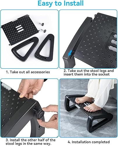 Repose-pieds de bureau réglable sur 6 hauteurs et angle réglable, repose-pieds antidérapant avec fonction massage, soulage les douleurs aux jambes, aux genoux et au dos, idéal pour la maison, le