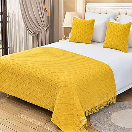 Zhiyuan Couverture de canapé tissée décorative de Chemin de lit en Tricot avec Pompon 130 x 260 cm, Vert Clair