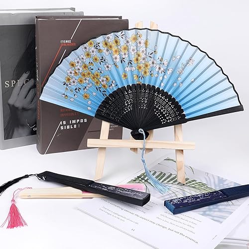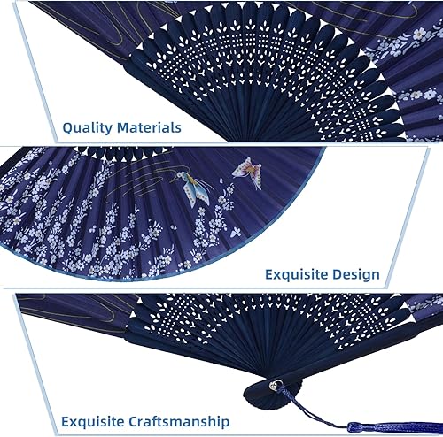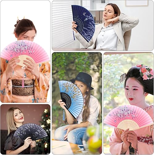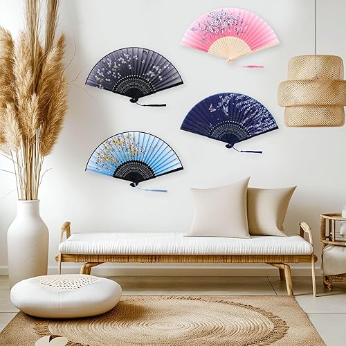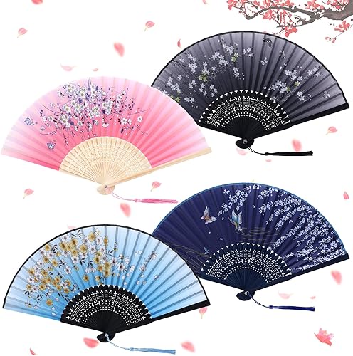 SULOLI 4pcs Éventails Pliants avec Frange en Soie Eventails à Main Portables de Fleurs pour Decoration Mariage Fête Cadeau
