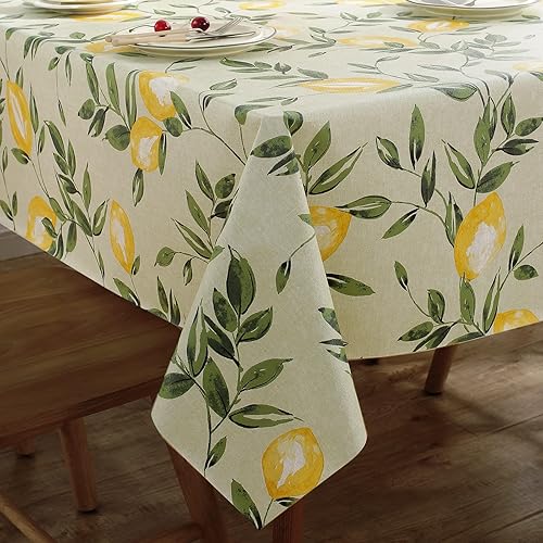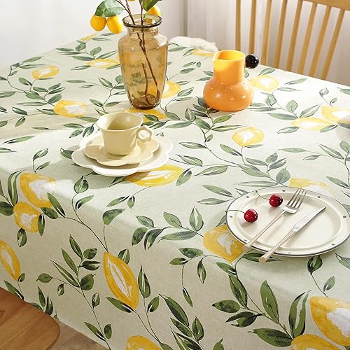 Arquiel Nappe Rectangle Citron Jaune, Nappes Antitache PVC ImperméAble Nappe RéSistante Et Lavable pour La Cuisine, Anniversaire Salon FêTe (140x180cm)