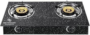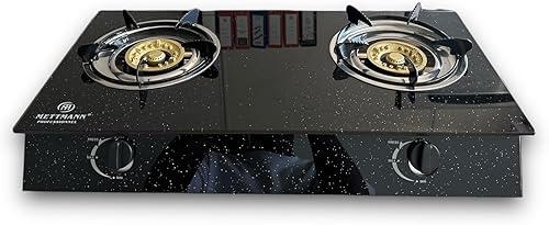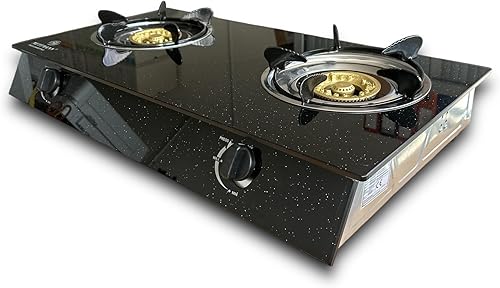 Réchaud Gaz Double 2 Brûleurs 3.2/3.2 kW, Allumage Piézo, Vitroceramique Noir Moucheté Facile à Nettoyer. Portable, Autoportant, Idéal Intérieur, Extérieur, Caravane, Camping. Puissance totale 6.4kW
