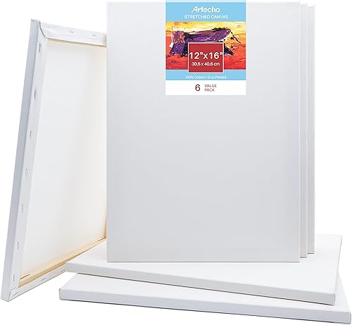 Artecho Toile tendue Blanc vierge, 12'x16' - 6Pack, apprêt 100% coton, pour peinture, verser, peinture à l'huile et support d'artiste, un bon cadeau pour les débutants et les professionnels