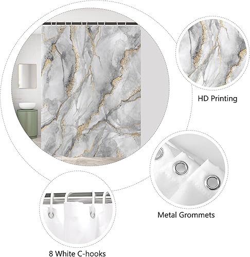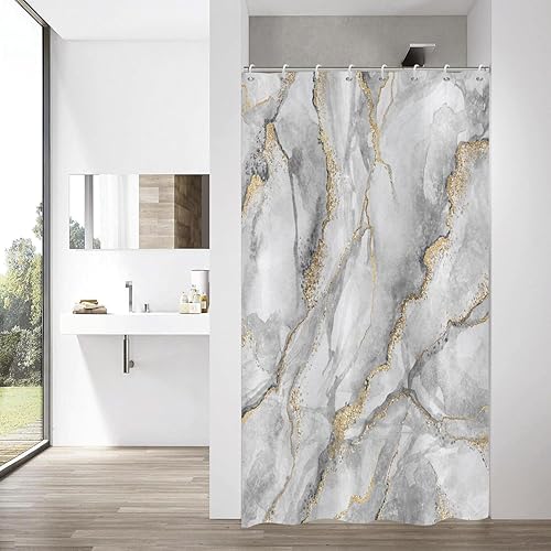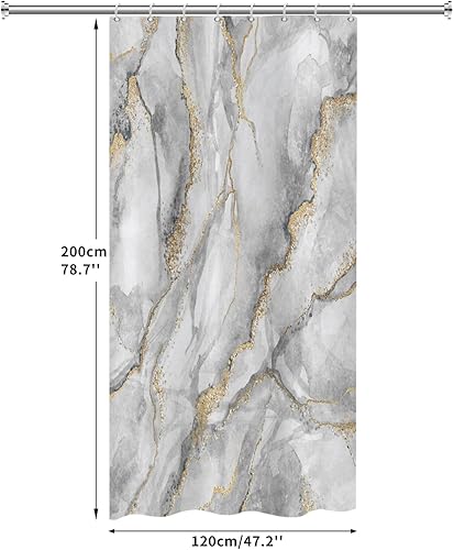 ASDCXZ Rideau de Douche Marbre 120x200 cm, Moderne Abstrait Gris Blanc Or Aspect marbre Texture colorée Lavable Rideaux de Douche Textile imperméable Rideau de Bain pour Baignoire avec 8 Crochets