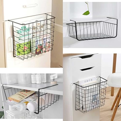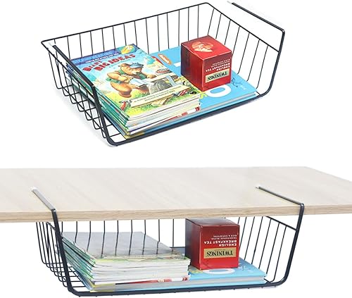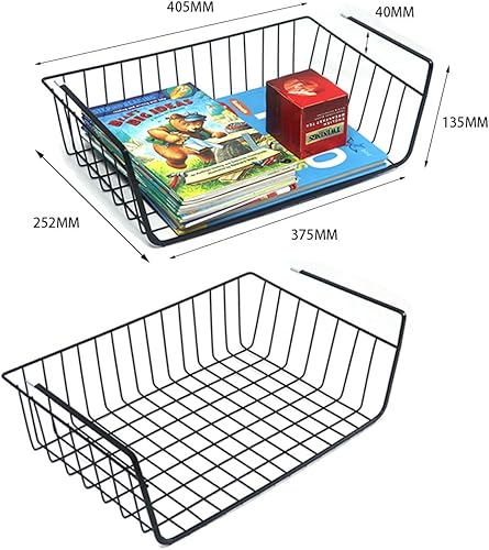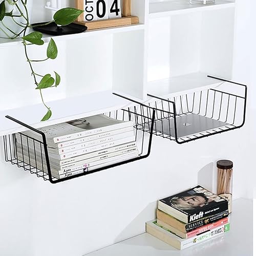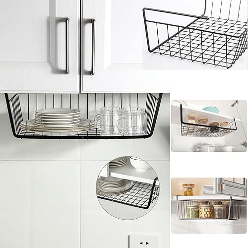 WEERSTONE Lot de 2 paniers de rangement amovibles à suspendre sous une étagère en fil métallique pour cuisine, armoires, étagères, armoire, salle de bain, bureau (noir)