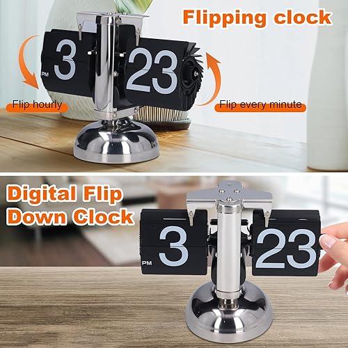 Horloge Digitale, Horloge mécanique Automatique à Rotation de Page alimentée par Batterie, Horloge à Rabat Rétro, Unique à la Mode Horloge Flip Flap pour Ornement de Bureau décor à la Maison de Bure