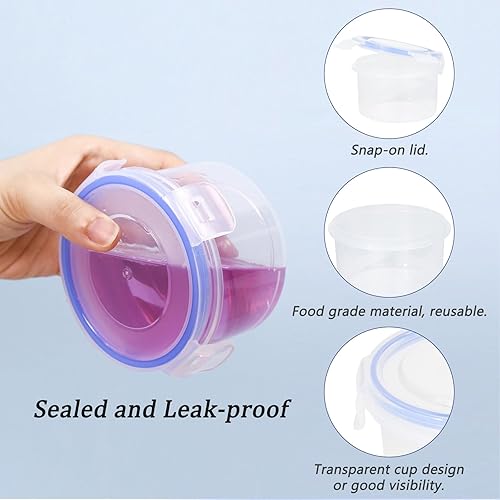 Surflyee 6 Pièces Boîte Plastique Alimentaire avec Couvercle Ronde, Réutilisable Boîtes Hermétiques Alimentaires, Petite Boîte Conservation pour le Sauce, le Yaourt, Micro-ondes Réfrigérateur Sécurité