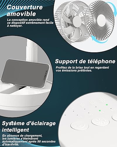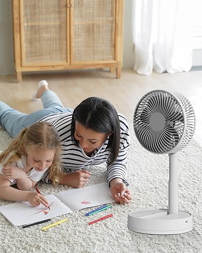KASYDoFF Ventilateur Silencieux USB, 8''-5400 mAh Oscillant Réglable en Hauteur Ventilateur Portable, 4-Vitesses Mini Ventilateur Portable Rechargeable Batterie, pour la Maison, Le Bureau
