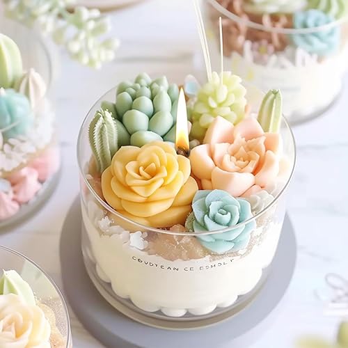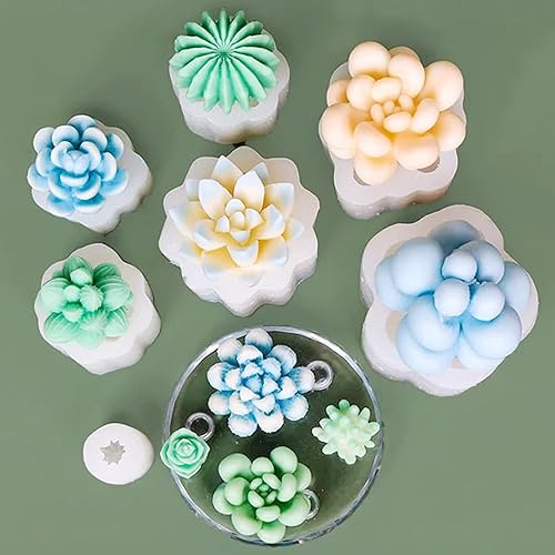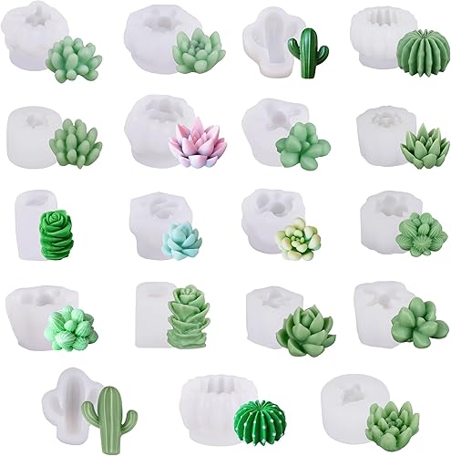 Cayway Lot de 19 Moules en Silicone pour Succulentes, Moules en Résine Fleurs 3D Moule en Succulents pour Bougies Faites à La Main Les Moules en Résine Epoxy