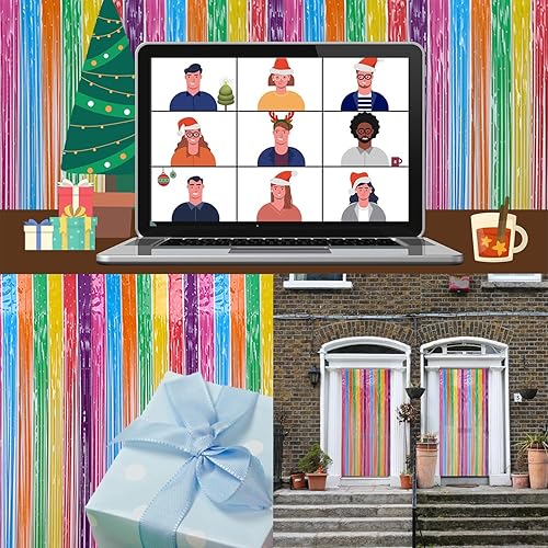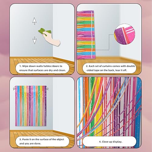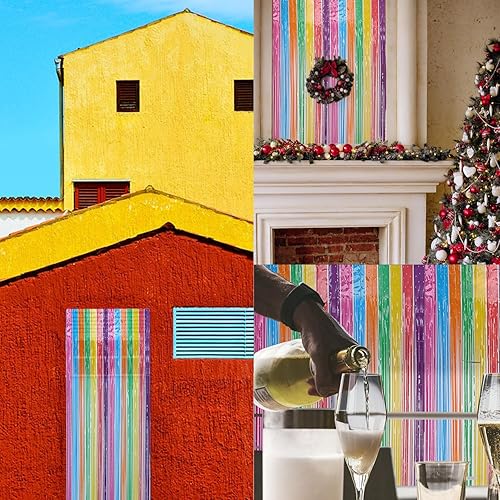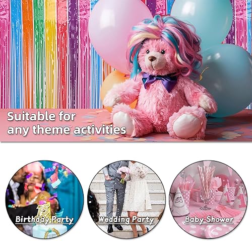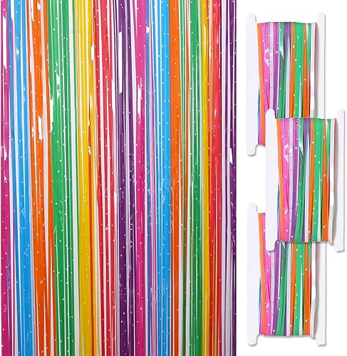 CNYMANY 3 pièces Rideau à Franges Scintillant, 1x2,5m, Arc-en-Ciel, PET, Multicolore, pour Anniversaire, Mariage
