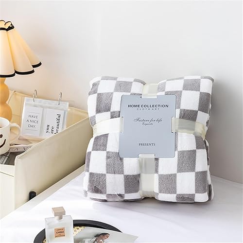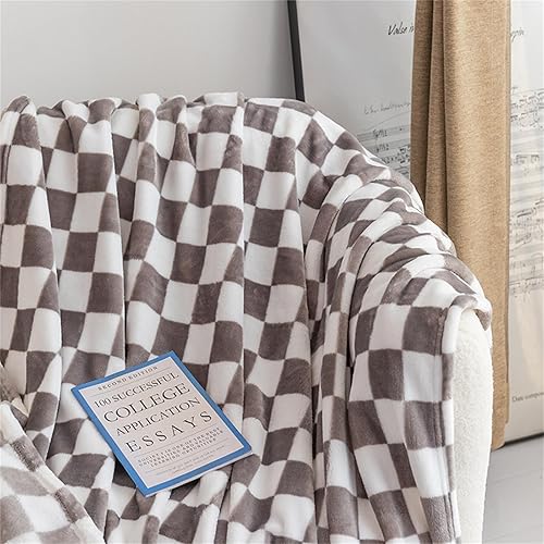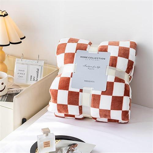 Highdi Couverture Polaire Plaid, Damier Jeté de Canapé Douillette Grande Taille Couverture Chaude et Douce Couverture d'hiver pour Chambre Canapé Lit (130 * 150CM,Orange)