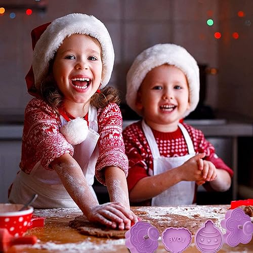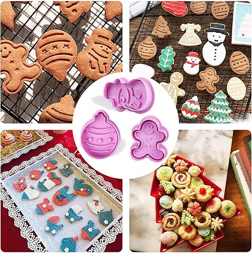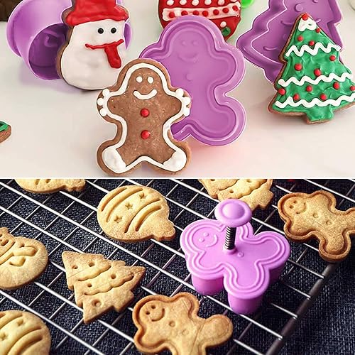 LIVESTN Lot de 8 Emporte-pièces Noël 3D en plastique,Moule à Biscuits pour Enfants, avec poussoir,pour Décoration de Fondant, Cookie, Gâteau (Violet)
