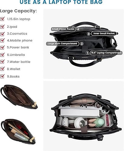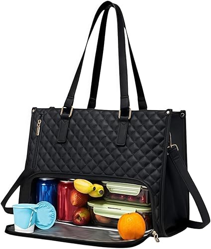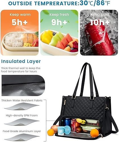 Sac à déjeuner pour femme, sac à main matelassé 2 en 1, sac pour ordinateur portable de 15,6 pouces, avec compartiment à déjeuner isotherme, plusieurs compartiments, design chic, 15,6 pouces